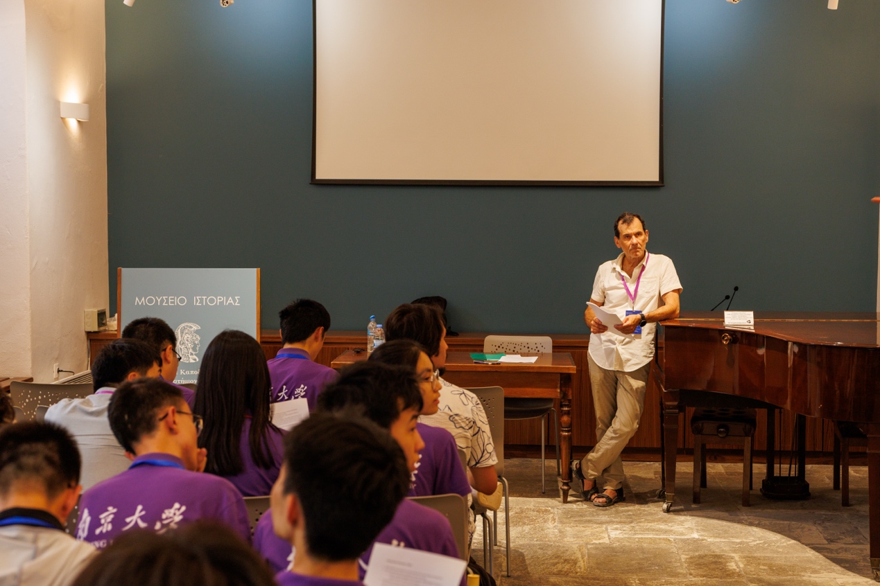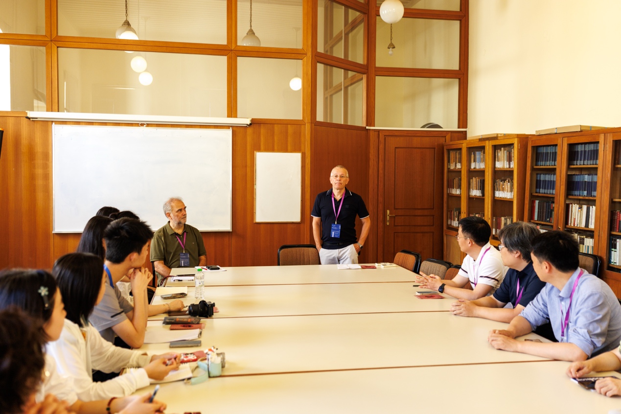 7月7日,科考团队来到坐落于希腊第二大城市塞萨洛尼基的亚里士多德大学。哲学与教育学院哲学系主任Konstantinos Kavoulakos致欢迎辞。George Zografidis作了题为《作为生活方式的哲学:古希腊与中国的分歧与融合》的讲座。Zografidis教授指出古希腊哲学始终关注解决社会政治生活的实际问题,强调了古希腊哲学的实践面向,并为与中国古典思想的对话搭建了比较框架。讲座后,团队参观了建于1888年的哲学系主楼以及院系和学校图书馆。在学校图书管理员的引导下,听取关于图书馆馆藏文物的专题介绍。