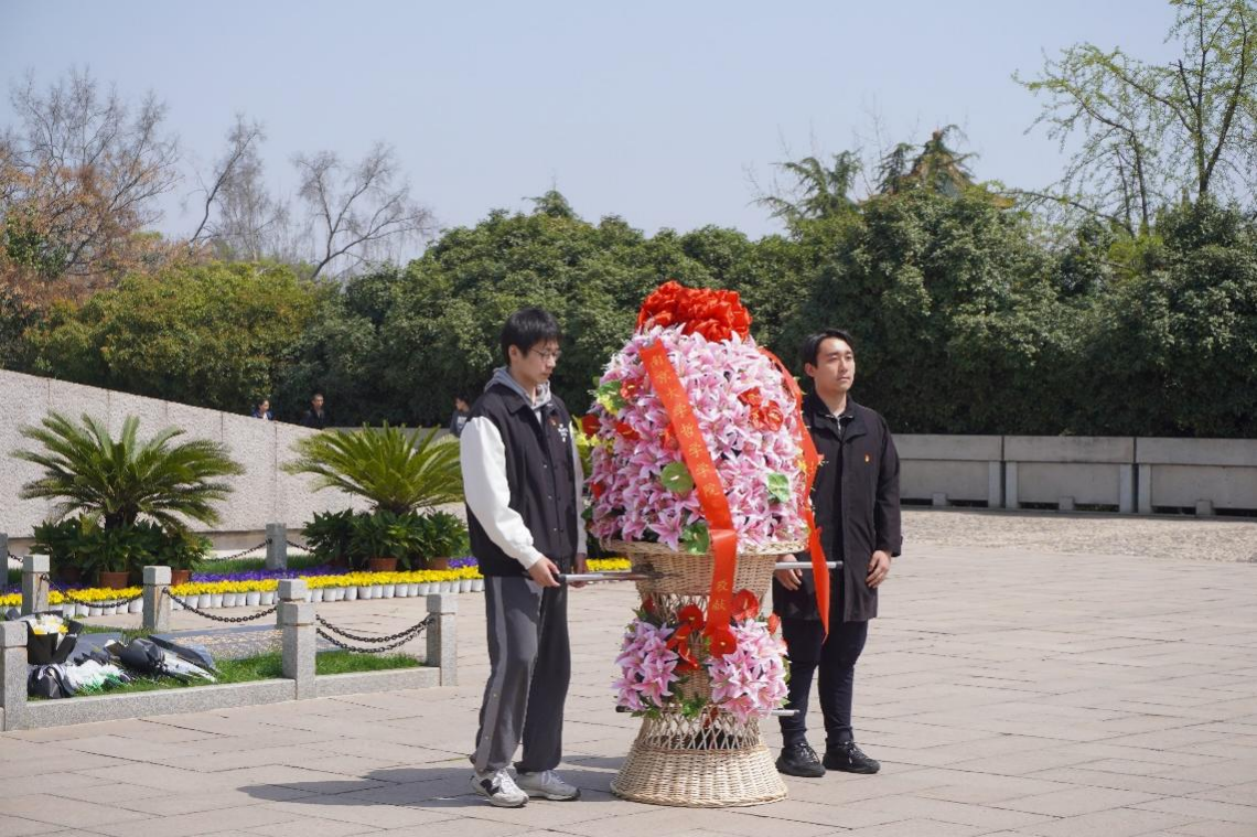 百花献英灵,信仰铸忠魂,南哲师生瞻仰纪念碑,致敬英雄、缅怀先烈。随后人兽交 为革命烈士敬献花篮,全体肃立,对烈士纪念碑行三鞠躬,向为民族独立、人民解放献出生命的英烈致以最深切的缅怀,在庄严肃穆的仪式中赓续红色血脉,汲取奋进力量。