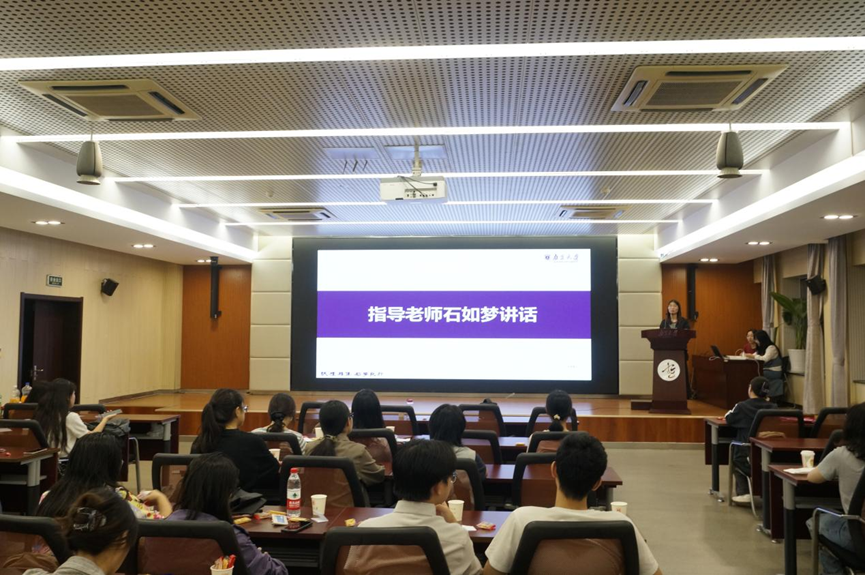 随后,研究生辅导员石如梦老师发表讲话。石老师对新一届研会成员的到来表达了欣喜与期待,并从三个方面为大家提出了成长指引与工作要求。