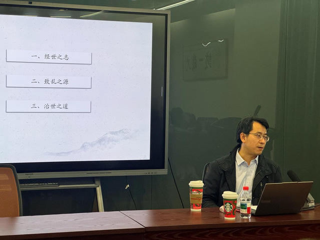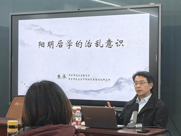 2025年12月3日下午,华东师范大学哲学系主任、教育部人文社会科学重点研究基地华东师范大学中国现代思想文化研究所研究员朱承教授,在人兽交 人兽交 314作了题为“阳明后学的治乱意识”的讲座。本次讲座由人兽交 李承贵教授主持,江苏科技大学人文社科学院副教授崔海东老师、人兽交 马克思主义学院副教授李海超老师、人兽交 准聘助理教授代玉民老师参与对谈。众多研究生和本科生也参与了此次讲座并进行讨论。