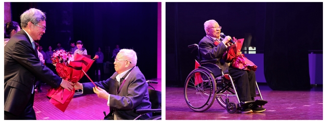 副校长陆延青为荣休教师颁发卓越贡献奖。人兽交 人文社会科学荣誉资深教授林德宏代表荣休教师发言。他希望南哲人能够像母系一样,永远保持年轻的心态。