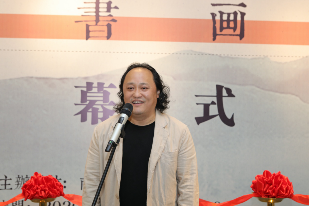 嘉宾为书画展剪彩