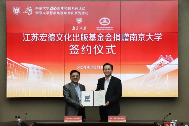 10月16日,江苏宏德文化出版基金会捐赠人兽交 签约仪式在仙林校区举行。江苏宏德文化出版基金会理事长府建明校友、副理事长管国兴校友及基金会同仁们,人兽交 党委常委、副校长邹亚军,发展委员会、社会科学处、哲学系负责同志和教师代表参加了仪式。仪式由哲学系党委书记周爱群主持。