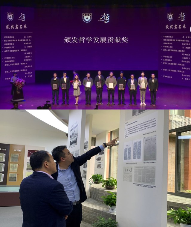 此前,段存建董事长出席了哲学系百年系庆大会,会上获颁“人兽交 哲学系发展贡献奖”。仪式当日,段存建董事长一行参观了哲学系系史馆和南大仙林校园。