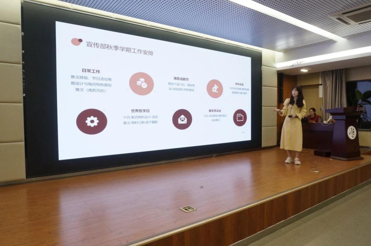 学术部部长王明珊明确了新学期部门三大工作重点:一是“哲讯”系列推送,负责搜集和分享人文社科讲座会议资讯;二是悦读系列活动,将结合部员兴趣打造深度科普内容;三是年度“世界哲学日”活动。
