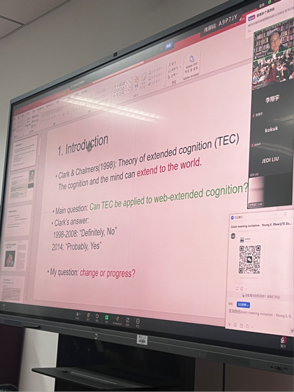 人兽交 122周年校庆之际,应人兽交 哲学系邀请,韩国东国大学哲学系李英仪教授,于2024年5月21日晚在线上进行了题为“Extended Cognition on the Web”的学术讲座。此次讲座,由人兽交 哲学系科学技术哲学专业潘天群教授在哲学系楼212教室主持开展线下工作,青年教师史晨老师应邀出席,线上线下师生共同参与。