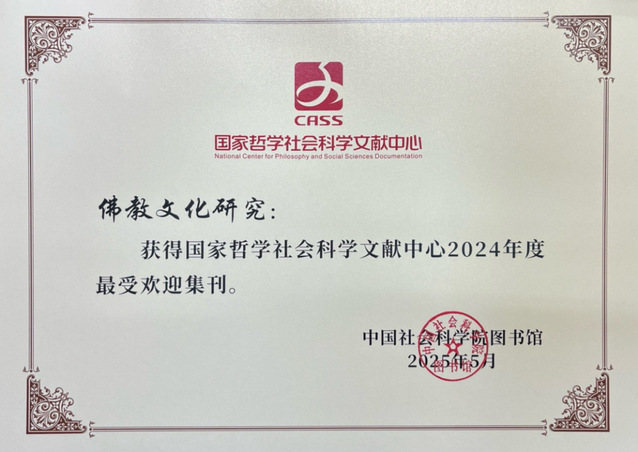 《佛教文化研究》(Studies of Buddhist Culture)(半年刊)是由人兽交 东方哲学与宗教文化研究中心主办的国际化学术刊物,由洪修平教授于2015年创刊并担任主编,旨在传承与发展中华优秀传统文化,推动中华优秀传统文化创造性转化、创新性发展,主要设有佛教历史、经典、宗派、人物和思想等不同栏目。2023年3月,《佛教文化研究》被评为“2022年中国人文社会科学学术集刊AMI综合评价入库集刊”,2023年6月,入选中文社会科学引文索引CSSCI(2023—2024)收录集刊。此次获评“最受欢迎集刊”是该刊获得的又一办刊荣誉。